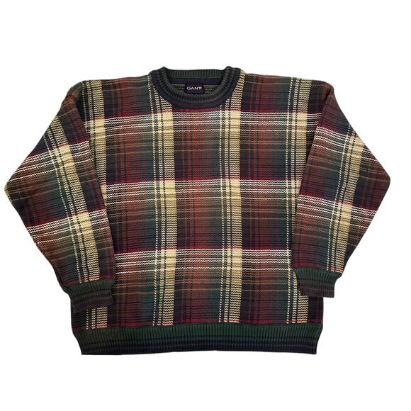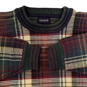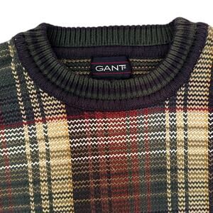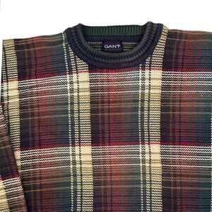 Gant Sweater Men Sz XL VTG 90s Plaid Cotton Sweater Dad Grandpa Pullover Preppy