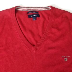 Gant Mens Size 2XL Cotton Wool Red V-Neck Long Sleeve Pullover Jumper Sweater