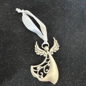 Adorn your home with this elegant silver tone angel ornament. Perfect for adding a touch of grace to your holiday decor.