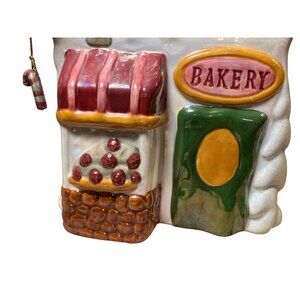 Ganz Ceramic Bakery Cookie Jar w/ Candy Cane Accent Snowy Roof & Holiday Detail
