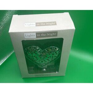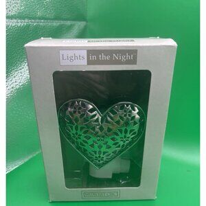The Ganz Lights in the night Nightlight features a heart-shaped design with a metallic finish, mounted on a plastic base. It functions as a night light, designed to plug into the wall for power. The sensor type is light, meaning it automatically turns on in low light conditions. The silver color adds a touch of elegance to any room, making it a stylish and practical addition to your home decor. Perfect for adding a soft glow to your space at night.