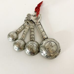 Ganz Measuring Spoons Set Rooster Chickens Sunflowers Embossed Silver Metal.