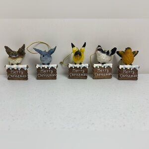 Ganz Merry Christmas Bird on a Snowy Sign Ornaments Lot of 5 Resin
