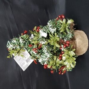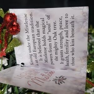 Flocked evergreen with red glittered berries and green leaves (mistletoe)
