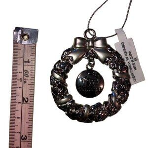 Ganz Pewter Christmas Ornaments Wreath Engravable - New Open Package Happy Holidays