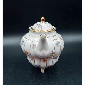 Ganz Porcelain Floral Teapot With Teacup 3 PC Stacking Tea For One Gold Trim