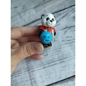 Ganz Webkinz Figurine Plastic Panda Bear Blue Bowling Ball Brown Teal Shirt does have some marks and wear