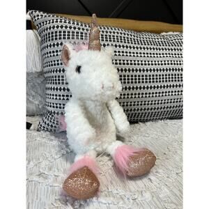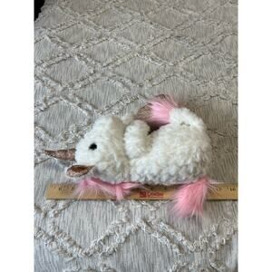 Ganz White Unicorn Pink Colored Mane Tail Stuffed Plush Rose Gold Horn Hooves