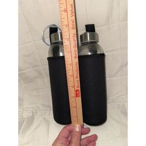 Keywords: Gaone water bottle, glass water bottle, stainless steel lid, neoprene sleeve, eco-friendly, sustainable, hydration, travel water bottle, reusable water bottle, clear water bottle, health, office, home, carrying loop, pre-owned.