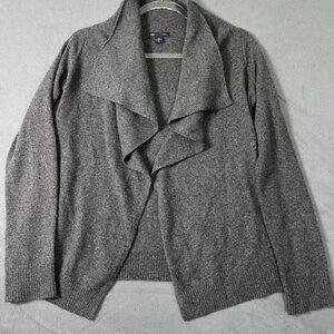 Gap 100% Cashmere Cardigan Cascade Neckline Open Front XS Grey
