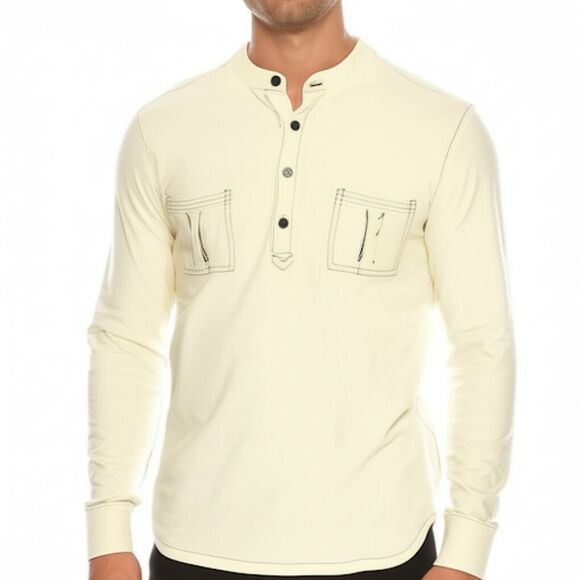This Gap 100% Cotton Cream Henley Long Sleeve Shirt is in good condition.*