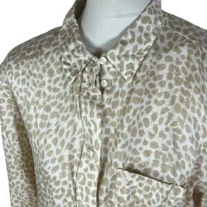 Gap 100% Linen Animal Print Boyfriend Button Down Longline / Tall Size L