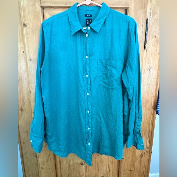 Gap 100% Linen Green Long Sleeve Button Down Shirt Size Large