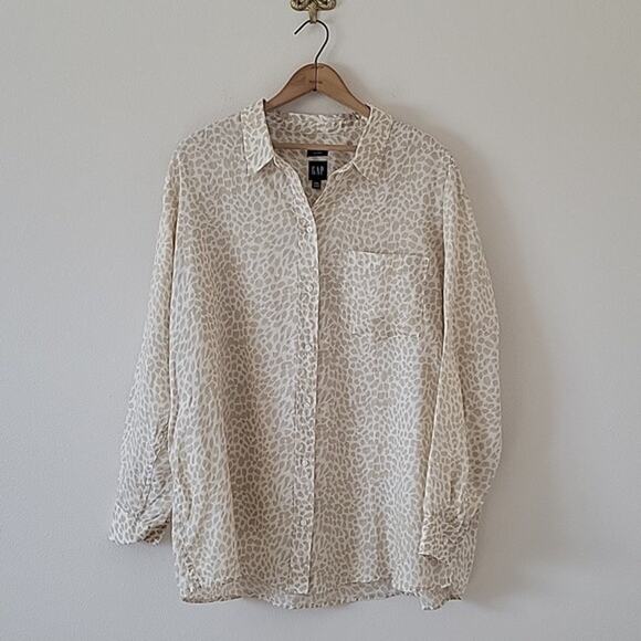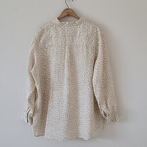 Gap 100% Linen Light Leopard Long Sleeve Boyfriend Shirt Size XXL