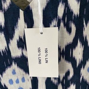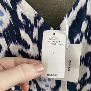 Gap 100% Linen Mini Dress Batik Ikat Blue Fit Flare Sleeveless Womens Size 6 NWT