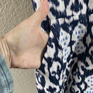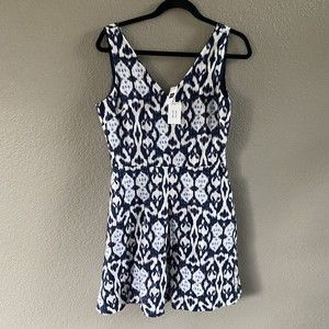 Gap 100% Linen Batik Ikat Blue Fit Flare v Neck Sleeveless Skater Dress Womens 6
