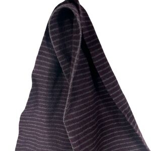 Simple scarf with unisex appeal - grey/eggplant stripes, unfringed and casual length. 100% merino wool to keep you cozy warm on chilly days.