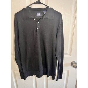 Gap 100% Merino Wool Mens Large Tall Black Long Sleeve Three Button Polo