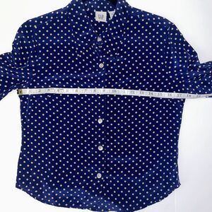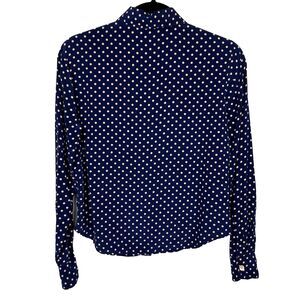 Gap 100% Silk Button Down Top Blouse Navy Blue White Polka Dot Print Women's S