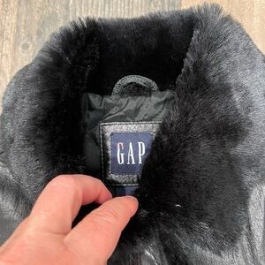 Gap 100% leather Girls Size Small 5-6 Black 100% & Faux Fur Collar Jacket