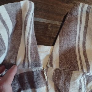 Get ready to add a stylish and comfortable skirt to your wardrobe with this Gap linen striped skirt. The skirt features a beautiful striped pattern in brown and off white colors, making it a perfect choice for any occasion. It has a comfortable and regular fit for a size 4 and has a length that falls somewhere between a mini and a maxi, also known as a midi.