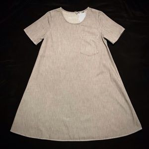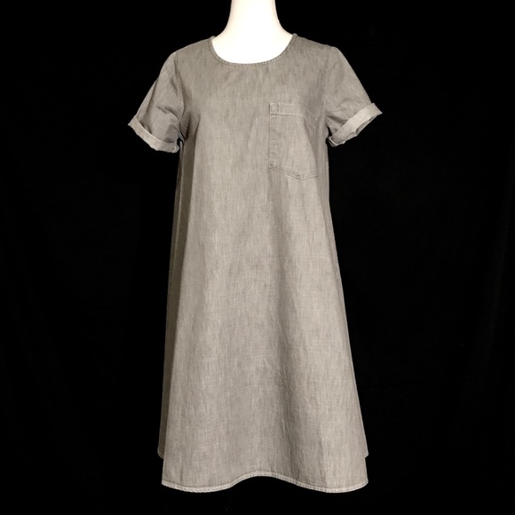 Gap 1969 A-line washed grey denim dress, 1 front Brest pocket, very simple very chic.