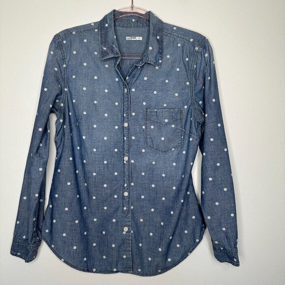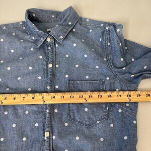 Gap 1969 Denim Boyfriend Shirt Blue Polka Dot Button up Cotton Size M