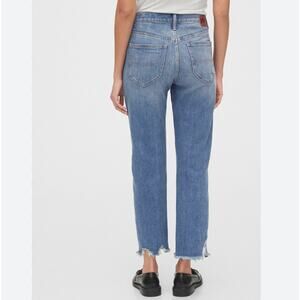 Gap 1969 High Rise Distressed Straight Leg Jeans Medium Indigo Wash Size 8