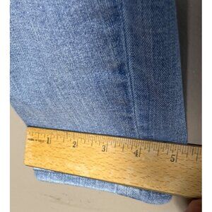 27" inseam, 14" flat waist, 5" leg opening 2015 light skinny jeans, some distressing, cotton blend, some pucker around distressed knee