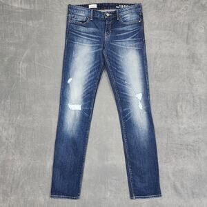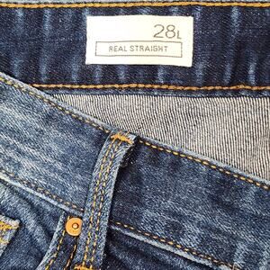 Gap 1969 Real Straight Jeans Size 28/6 Long Stretchy Mid Rise Distressed Ripped