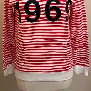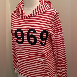 Gap 1969 Red White Striped Long Sleeve 100% Cotton Hooded Preppy Sweatshirt SZ M
