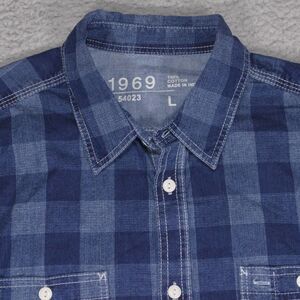 Gap 1969 Shirt Men Large Blue Long Sleeve Chambray Work Casual Button Up Pockets