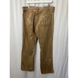 These Gap 1969 straight fit jeans are a retro-inspired classic, perfect for adding timeless style to your wardrobe. Featuring a distressed wash in a versatile tan color, these jeans offer a rugged yet polished look. Crafted from 100% cotton, they are durable and comfortable for everyday wear. The design includes a button closure, belt loops, and five-pocket styling for functionality.