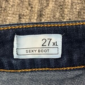 Gap 1969 Women’s Sexy Boot Blue Jeans Size 27xL Raw Hem Dark Wash Low Rise