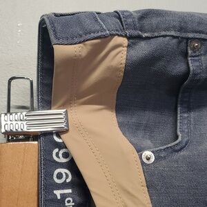 Gap 1969 jeans women's size 28 size 6R size 6 blue cream maternity front elastic at waist comfy low-rise low rise
