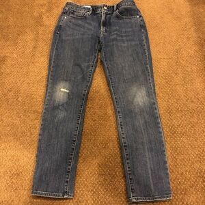 Jeans gently worn. Purchased with rip on right knee. Approx 25.5” inseam. Pet and smoke free home.