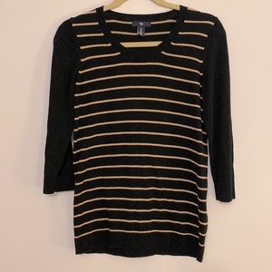 Gap 3/4 Sleeve 100% Cotton Black and Tan Striped Sweater