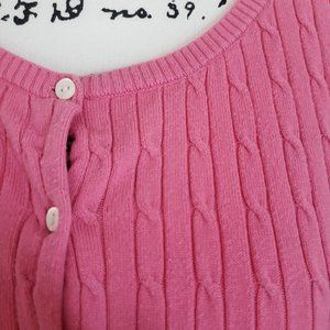Pink cable knit 3/4 sleeve cardigan from Gap, size large. Tag has been cut out.