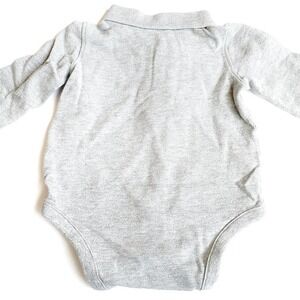 Long sleeve onesie bodysuit in pique cotton. Excellent for outings and events. My youngest wore this twice during the holidays. No flaws. Smoke free, fragrance free, and pet free. #polo #henley #collar #popcollar #gap #piquepolo #grey #onesie #bodysuit #longsleeve #onepiece