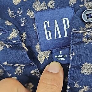 Gap Navy Blue Button Front Placket Long Sleeve Shirred Popover Shirt Size S