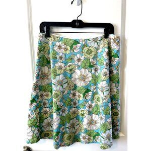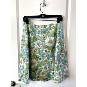 Gap A-Line Skirt Womens 8 Blue green Floral Seersucker Spring Y2K 2000s Vintage lined zipper