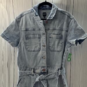 Gap Acid Wash Short Sleeve Denim Belted Romper/Jumper Size 16 NEW