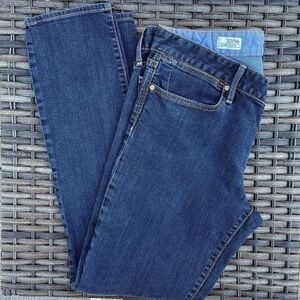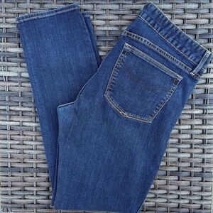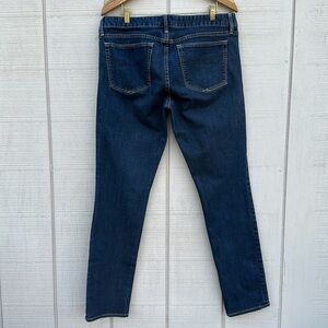 The Always Skinny Jean by Gap in a dark wash feature a 5 pocket styling with contrast stitching. Copper and blue colored hardware.