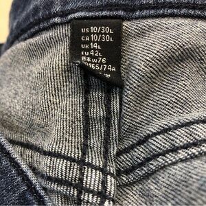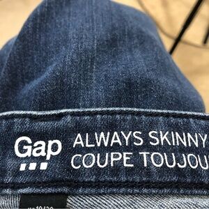 Always Skinny jeans by Gap. They are a size 10/30 with measurements of 17 inches at the waist a rise of 9 inches with an inseam of 30 inches. They are in excellent used condition.