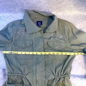 Gap Army Green Utility Jacket, Embroidered Detailing, Gathered Waist, Women’s M
