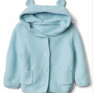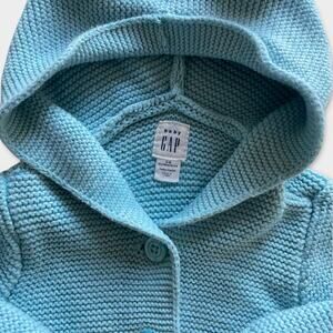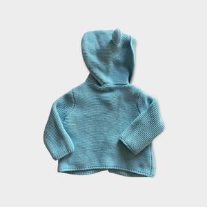Gap Baby Brannan Blue Knit Buttoned Sweater Hood with Ears 3-6mos Cozy Layer