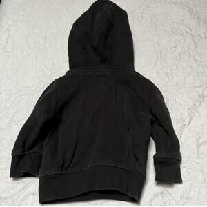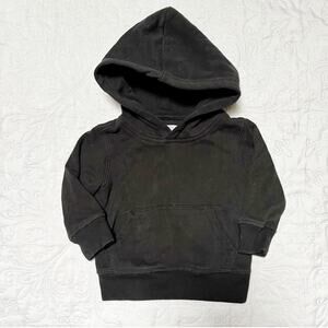 Gap basic pullover hoodie sweatshirt. Solid black with kangaroo pocket and hood. Very good condition, minor wear. Size 12–18 months.