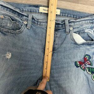 Gap Best Girlfriend Blue Jeans Womens 27 30x25 Embroidered Bird Butterfly Thrash