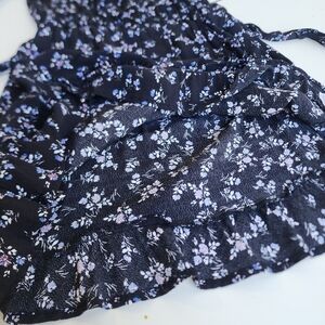 Gap Black Blue Floral Print Faux Wrap 3/4 Sleeve Ladies Dress Ruffle Petite XS