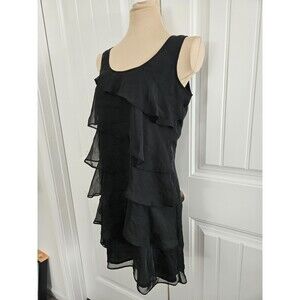 Gap Black Chiffon Shutter Tier Ruffle Dress Sz 4 Short